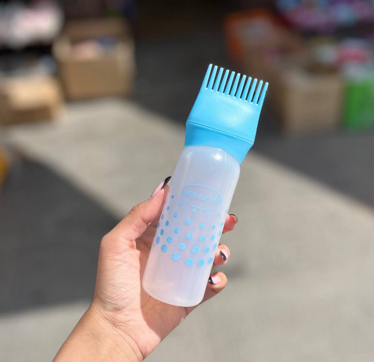 • این بطری بخاطر داشتن اپلایکاتور شانه ای بصورت خطی و مستقیم همزمان با شانه کشیدن مو، روغن را به کف سر میرساند
